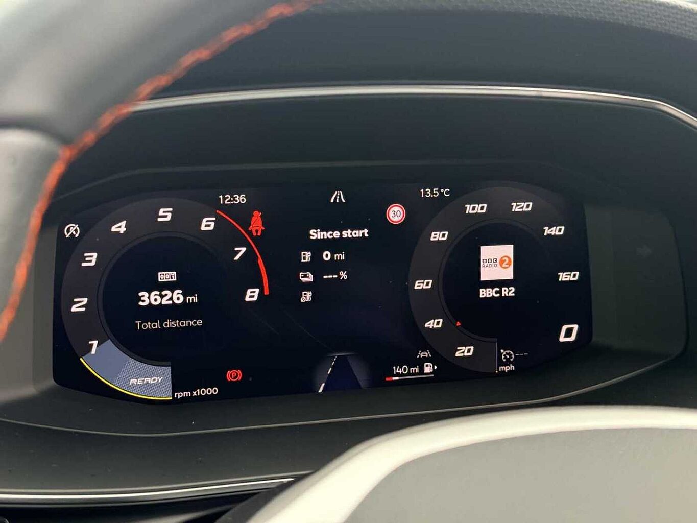 - Leather Flat Bottomed - Perforated Steering Wheel with Red Stitching and FR Logo